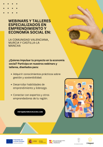 Webinars y talleres especializados en emprendimiento en economía social en la Comunidad Valenciana, Murcia y Castilla La Mancha.